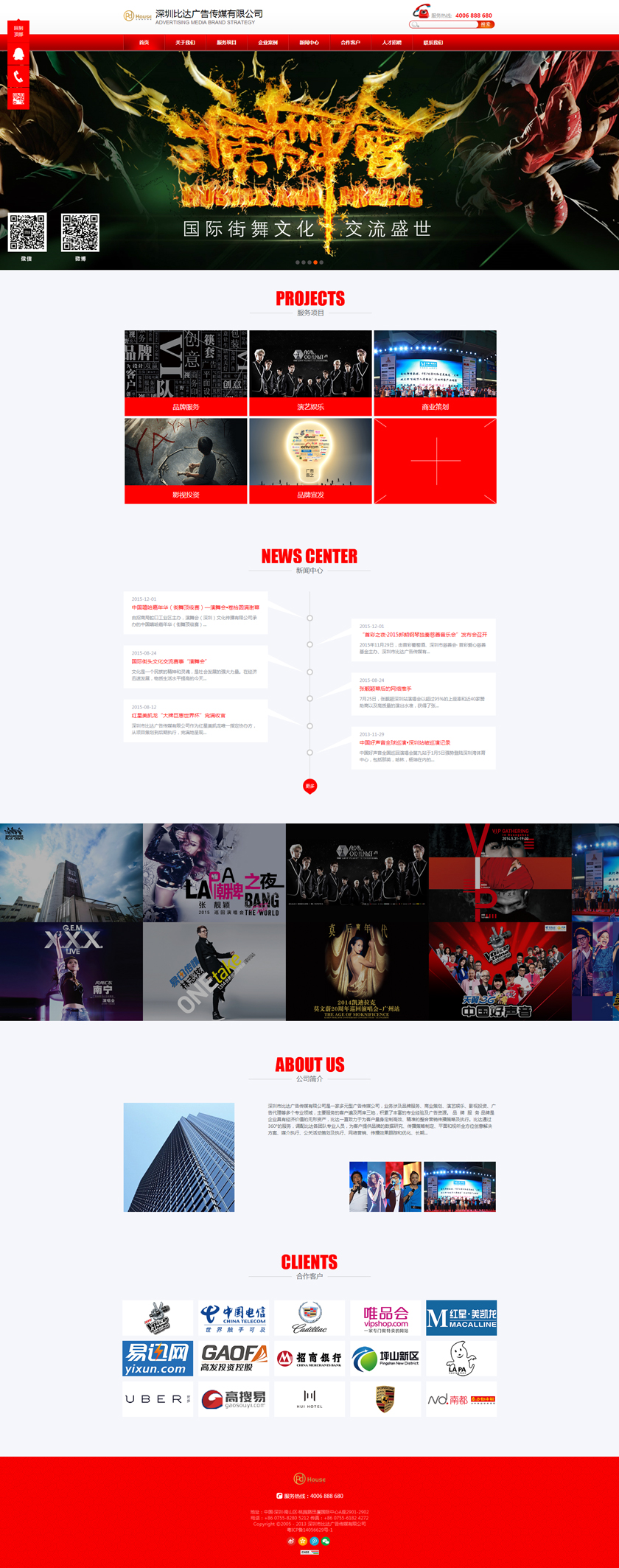 Project Description 深圳市比达广告传媒有限公司是一家多元型广告传媒公司,业务涉及品牌服务、商业策划、演艺娱乐、影视投资、广告代理等多个专业领域,主要服务的客户遍及两岸三地,积累了丰富的专业经验及广告资源。 Official website address 凉山http://www.pdhouse.com I want to share