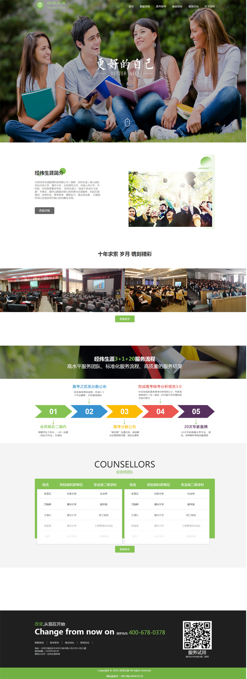 Project Description 北京经纬生涯教育科技有限公司(简称:经纬生涯)核心团队来自北京大学、清华大学、北京师范大学、中国人民大学、中科院、社科院等著名学府, 经纬生涯以“促进个体成长与发展”为使命,提供以数据为核心的结果化生涯服务,包括生涯规划、选考科目、高考报考、兼职实习、就业创业等, 已逐渐形成以生涯咨询为核心的完整生态链。 Official website address 凉山http://www.jingweishengya.com/ I want to share